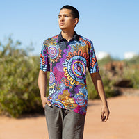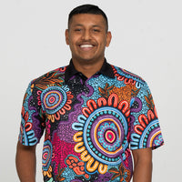 Celebration: A vibrant collection from Yorta Yorta artist Alkina Edwards that represents people from all walks of life coming together to celebrate their cultures. This beautiful design lights up a room with Alkina's signature vibrant digital artwork.