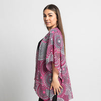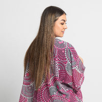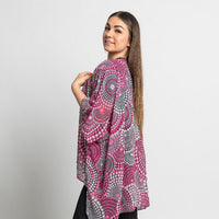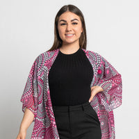 Available in a generous single size, our shawls are tailored with arm holes for the perfect fit. They are made from soft, flowing chiffon that holds colour beautifully. A lightweight and breathable piece that works in all seasons.