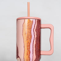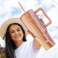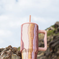 These stunning insulated Travel Tumblers are the perfect on the go companion. Features a handy sip straw, large 1.2L capacity, comfortable handle for ease of use, and tapered design for easy storage in the car. From camping trips to days at the office, this is destined to be your new favourite accessory!