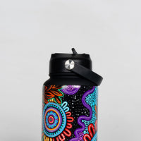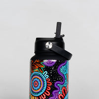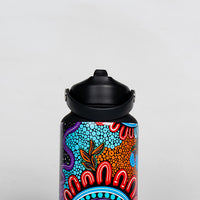 Our beautiful insulated stainless steel handled bottles are perfect for staying hydrated during your day-to-day activities. The double-walled vacuum design is printed with fabulous First Nations artwork that keeps your drinks cold for 24 hours and hot for 12 hours.