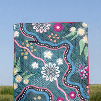 Transform your picnic with these stunning First Nations artwork picnic rugs. Perfect for spending time at the park or beach, for throwing over car seats, and for keeping little ones comfortable on days out.