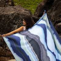Elevate your next beach trip with our luxurious sand-free beach towels, showcasing stunning artwork by First Nations collaborating artists. Each towel features a beautiful, sublimated design that tells a unique story of the artist's deep connection to Country.