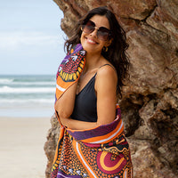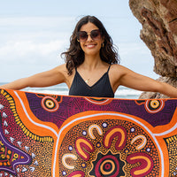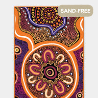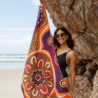 Elevate your next beach trip with our luxurious sand-free beach towels, showcasing stunning artwork by First Nations collaborating artists. Each towel features a beautiful, sublimated design that tells a unique story of the artist's deep connection to Country.