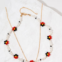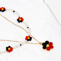 "Raise The Flag" Aboriginal Flag Flower Pearl Beaded Necklace
