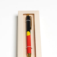 Each black ink pen features a gorgeous piece of artwork from talented First Nations artists around Australia. These premium pens come gift boxed and make wonderful presents.