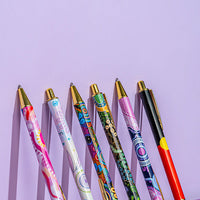These colourful pens make great gifts for those creative people in your life or as the perfect addition to your office with unique and vibrant art. Featuring wrap-around artwork, a holder, and a click on/off functionality.