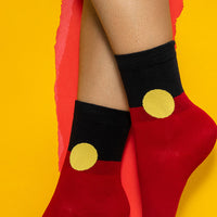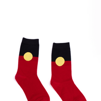 These socks are part of our ‘Raise the Flag’ collection, a range of products that celebrate the Aboriginal flag finally being freed and placed into public hands.