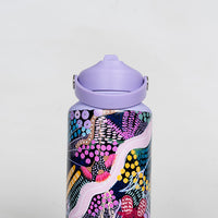Our beautiful insulated stainless steel handled bottles are perfect for staying hydrated during your day-to-day activities. The double-walled vacuum design is printed with fabulous First Nations artwork that keeps your drinks cold for 24 hours and hot for 12 hours.