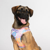 Fabulously printed with First Nations artworks, our harnesses are beautifully bold. With wide chest coverage and adjustable around the neck and chest, they’re comfortable for your doggies to wear for a good, long walk. Complete the look with a Yarn leash or bandana, available in the same artwork.