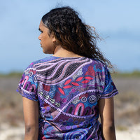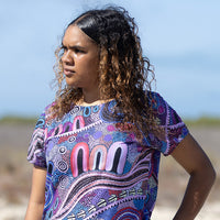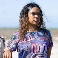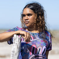 Jessica's art is inspired by family, Country, and Culture in the Yued region in Western Australia. In her debut polo and fashion range she celebrates and honours her heritage through vibrant pieces that each tell a distinct yet connected story.