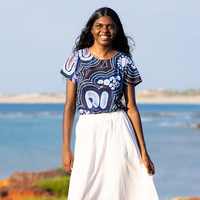 These vibrant fashion feature artwork that represents the theme “For Our Elders”, an acknowledgment of the pivotal roles that Elders have and continue to play in their communities and a celebration of everything they have achieved. This item was originally released as part of our iconic NAIDOC 2023 collection.