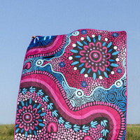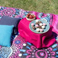 Transform your picnic with these stunning First Nations artwork picnic rugs. Perfect for spending time at the park or beach, for throwing over car seats, and for keeping little ones comfortable on days out.