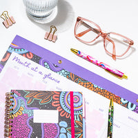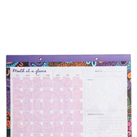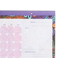 This practical month planner has all of your organisational needs covered! Featuring a beautiful print patterned calendar to help you keep track of your important dates, plus a side panel for notes and monthly goals. Available in a range of designs from First Nations artists, you're sure to find your favourite to add some beauty to your work or study.