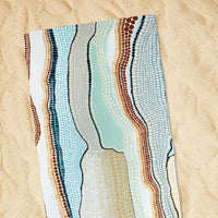 Get ready to kick back and relax at the beach or pool with this beautiful towel. Made from soft and absorbent fabric with a cotton backing, this towel is perfect for drying off after a swim or lounging in the sun. Each towel features a beautiful, sublimated design that tells a unique story of the artist's deep connection to Country.
