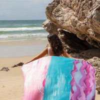 Elevate your next beach trip with our luxurious sand-free beach towels, showcasing stunning artwork by First Nations collaborating artists. Each towel features a beautiful, sublimated design that tells a unique story of the artist's deep connection to Country.