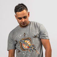 Chillax, kick back and throw a line in these new Traka tees from the Robert Levi Signature Tee Collection. Designed by proud Torres Strait Islander Kauraraig man and artist, Robert Levi, these tees are perfect for that chill, surf vibe. This fit is made to endure everyday wear, having the composition of 100% combed cotton, a ribbed crewneck and double needle hems. Try pairing this unisex regular fit tee with some denim shorts and your fave pair of sandals or white sneakers.