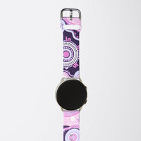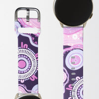 Personalise and update your watch with these vibrant and unique watch straps. Available in a range of incredible First Nations artworks and a selection of materials and sizes to suit every taste. With a metal buckle and multiple fastening options.