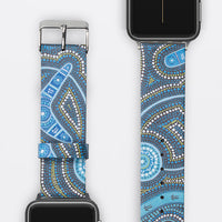Personalise and update your watch with these vibrant and unique watch straps. Available in a range of incredible First Nations artworks and a selection of materials and sizes to suit every taste. With a metal buckle and multiple fastening options. Non-animal PU Leather.
