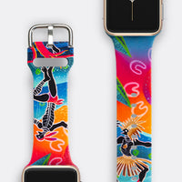 Personalise and update your watch with these vibrant and unique watch straps. Available in a range of incredible First Nations artworks and a selection of materials and sizes to suit every taste. With a metal buckle and multiple fastening options.