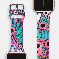 Personalise and update your watch with these vibrant and unique watch straps. Available in a range of incredible First Nations artworks and a selection of materials and sizes to suit every taste. With a metal buckle and multiple fastening options.