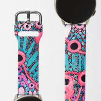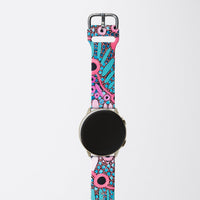 Personalise and update your watch with these vibrant and unique watch straps. Available in a range of incredible First Nations artworks and a selection of materials and sizes to suit every taste. With a metal buckle and multiple fastening options.
