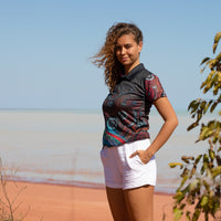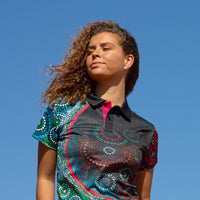 An adopted design from our NAIDOC range, it describes the relationship of two tribes, celebrating their differences as well as their unity as one people. These polos are fabricated in a sports mesh fabric with unique moisture wicking properties to help keep you dry.