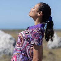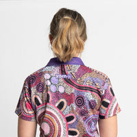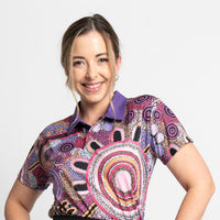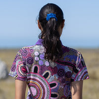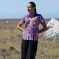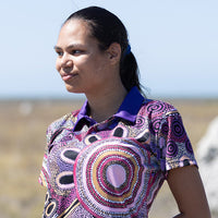 Jessica's art is inspired by family, Country, and Culture in the Yued region in Western Australia. In her debut polo and fashion range she celebrates and honours her heritage through vibrant pieces that each tell a distinct yet connected story.