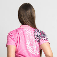 The Essence polo is our latest addition to the contrast polo lineup! Featuring a creative use of the vibrant First Nations artwork created by Yarn collaborating artists. With contrasting panels for a more subtle look, the Essence polo has the best of both worlds.
