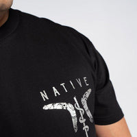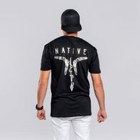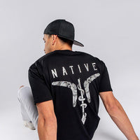 This design by First Nations artist Nathaniel Chapman takes inspiration from universal streetwear graphics. Sportswear has had such a huge influence on young mob, so Nathaniel has put his own spin on it, combining it with First Nations street art style.
