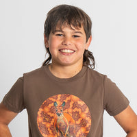 Kangaroo (Barra) 'Australian Wildlife Conservancy' Walnut Cotton Crew Neck Kids T-Shirt