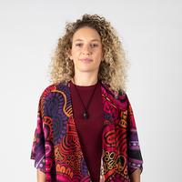 Featuring vibrant artwork from Alkina Edwards, these shawls drape beautifully and add colour to your outfit without heaviness or bulk.