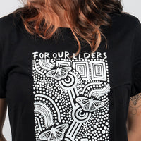 Enjoy these new women’s T-shirts with vibrant artwork was made by Tara Butterworth for the theme of 'For Our Elders', an acknowledgment of the pivotal roles that Elders have and continue to play in their communities and a celebration of everything they have achieved. This t-shirt was originally released as part of our iconic NAIDOC 2023 collection.