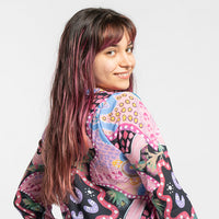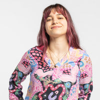 Washing: Turn the garment inside out. Gentle machine wash using cold or warm water to avoid shrinkage and colours running. Do not bleach. Line dry in shade. Cool iron only.